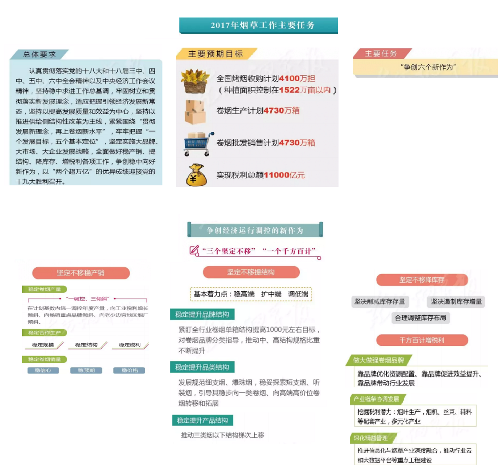 2017年全國煙草工作會議在北京召開,國家局局長凌成興在會上作了題為《堅持穩(wěn)中求進總基調(diào) 爭創(chuàng)穩(wěn)中向好新作為以“兩個超萬億”優(yōu)異成績迎接黨的十九大勝利召開》的報告。