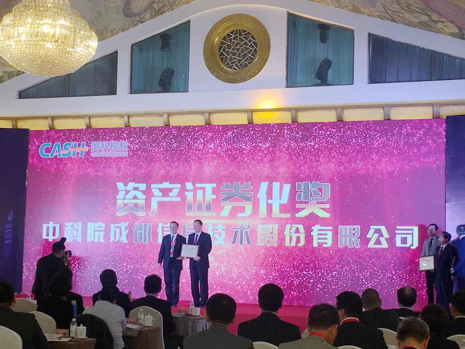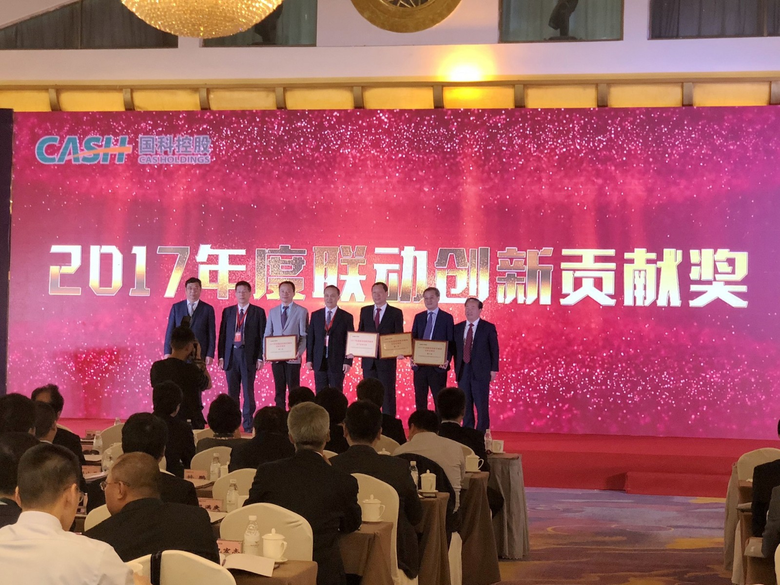 4月17日至18日,中國科學(xué)院控股有限公司(以下簡稱“國科控股”)以“進(jìn)入新時(shí)代、實(shí)施新舉措、實(shí)現(xiàn)新發(fā)展”為主題召開了2018年度工作會,表彰了一批在科技創(chuàng)新與實(shí)現(xiàn)資本增值方面業(yè)績突出的企業(yè)。我公司榮獲了2017年度聯(lián)動創(chuàng)新貢獻(xiàn)獎“創(chuàng)新發(fā)展獎第一名”和“資產(chǎn)證券化獎”。中國科學(xué)院副院長、黨組成員張濤親自為我公司頒獎,我公司黨委書記、董事長王曉宇代表公司上臺領(lǐng)獎。