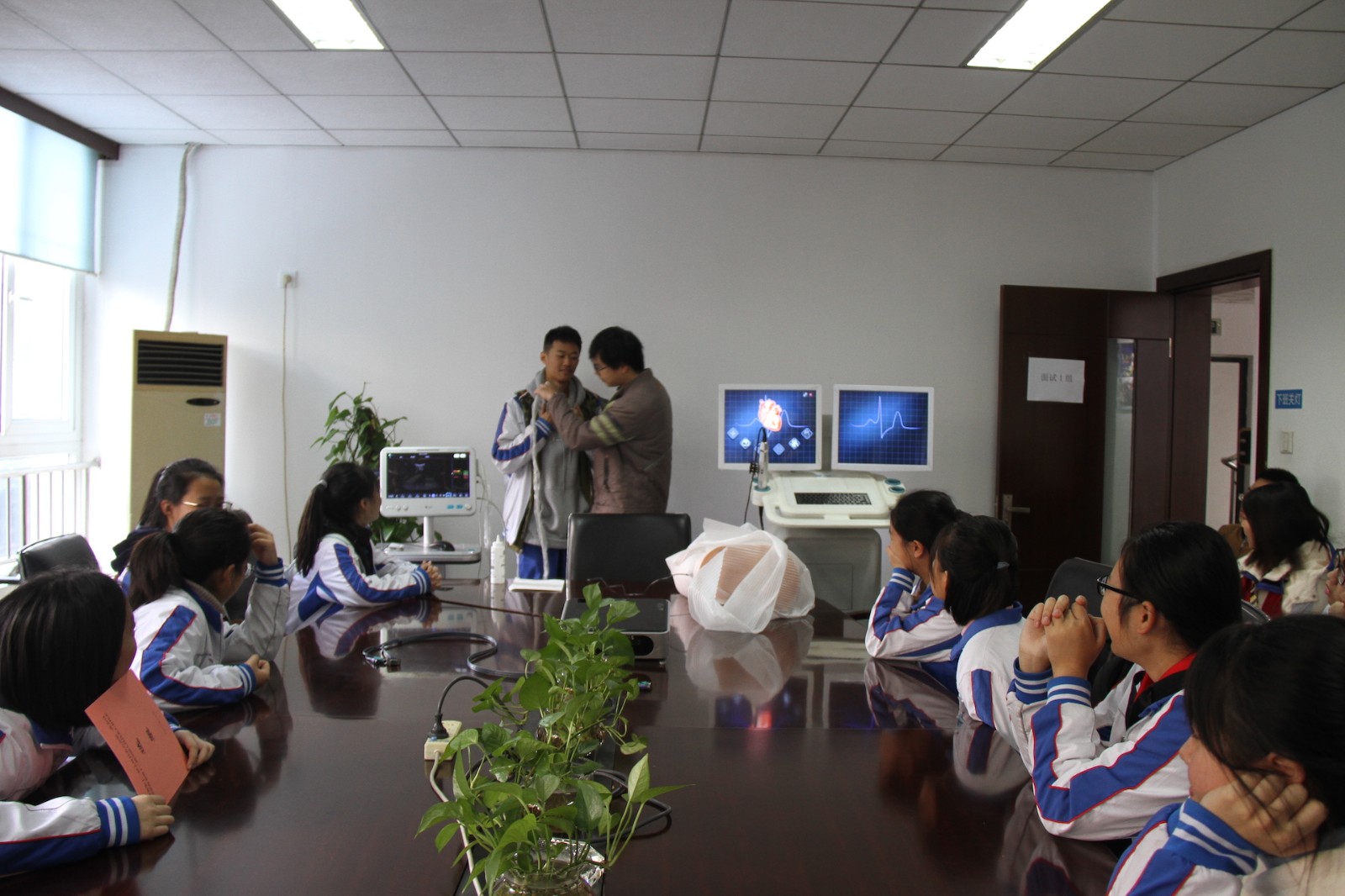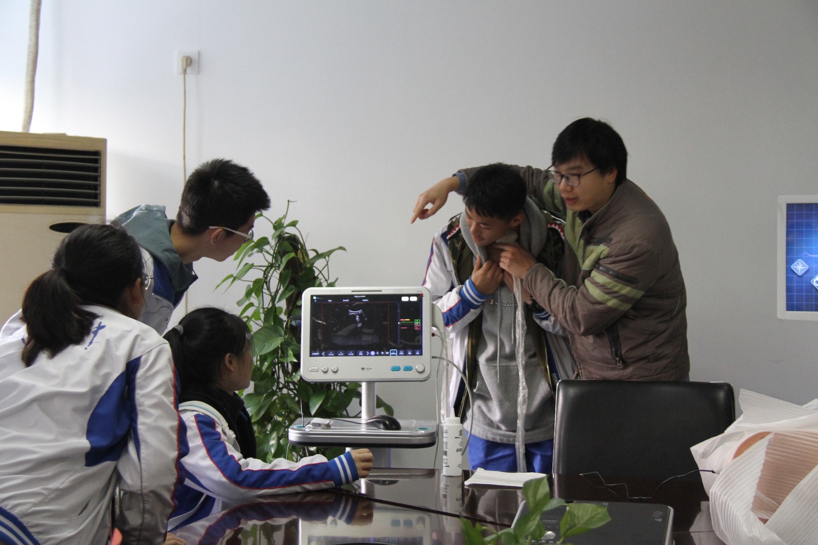 交流會(huì)上,陳渝為同學(xué)們介紹了中科信息數(shù)字會(huì)議系統(tǒng)展廳的基本情況和科技創(chuàng)新成果,讓成都七中的學(xué)生們了解了中科信息數(shù)字會(huì)議系統(tǒng)三十多年來為黨和國家重要會(huì)議提供服務(wù),不斷創(chuàng)新的歷史沿革和發(fā)展歷程。在互動(dòng)環(huán)節(jié)中,學(xué)生們積極體驗(yàn)了電子選舉系統(tǒng)和基于人臉識(shí)別的報(bào)到系統(tǒng)的使用,加深了對(duì)人工智能圖像處理技術(shù)在會(huì)議中運(yùn)用的理解。隨后,高峻嘉為學(xué)生們講解了 “經(jīng)食道超聲”相關(guān)的技術(shù)原理和操作方法,并進(jìn)行了現(xiàn)場(chǎng)模擬教學(xué)和體驗(yàn),一系列的教學(xué)互動(dòng)提高了同學(xué)們對(duì)于醫(yī)學(xué)仿真技術(shù)領(lǐng)域的興趣。